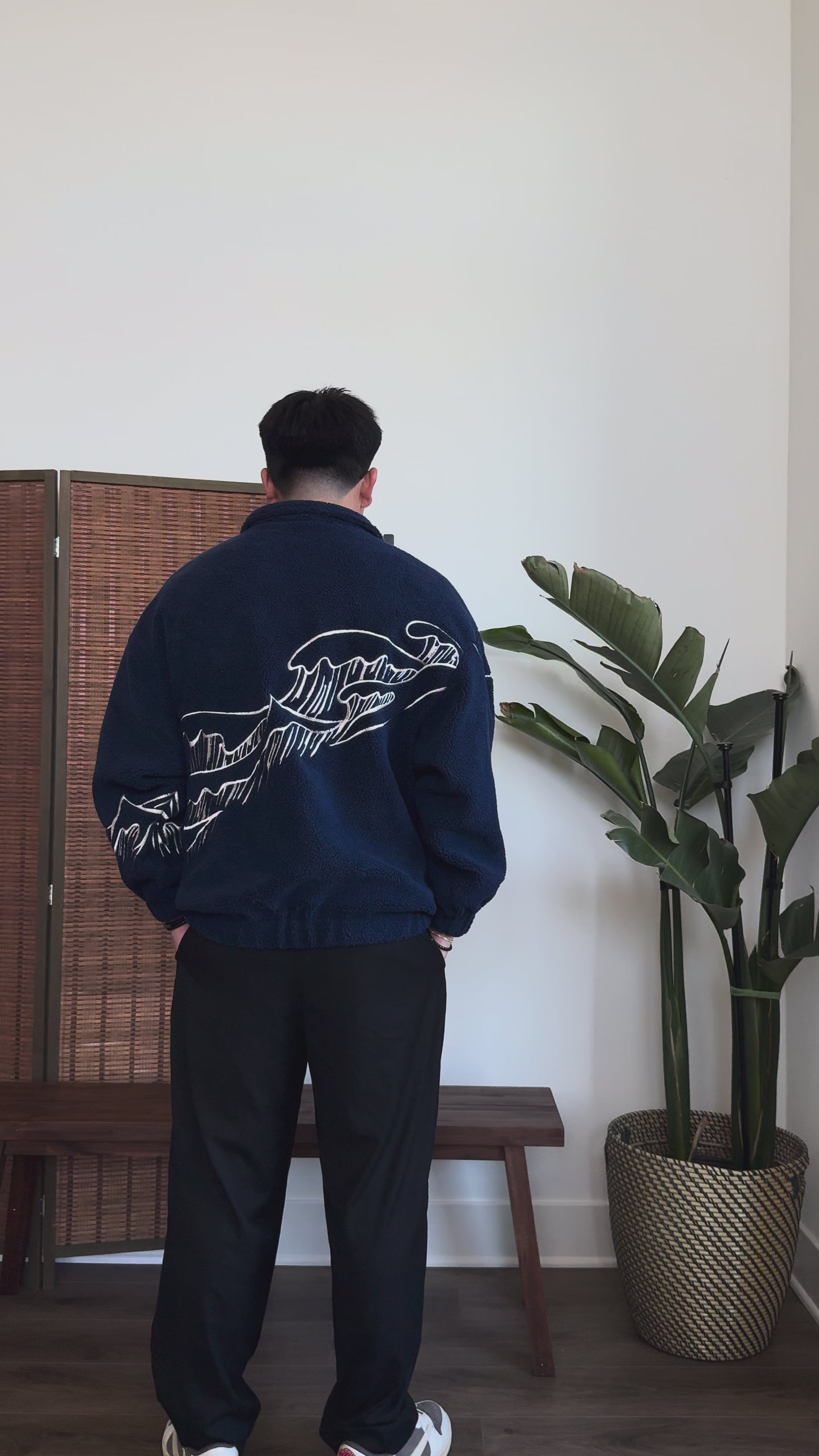 Reverse Great Wave - Sherpa Quarter-Zip Jacket (Pre-Order)