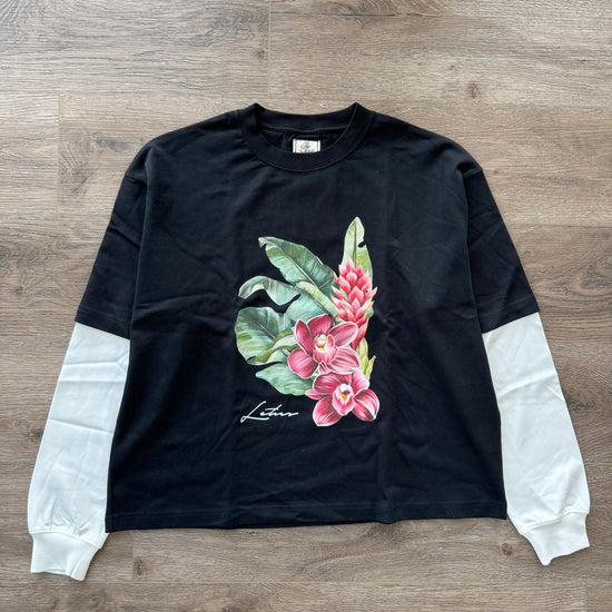 Orchid Art - LONG SLEEVE (BLACK TEE/WHITE SLEEVES)