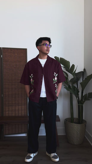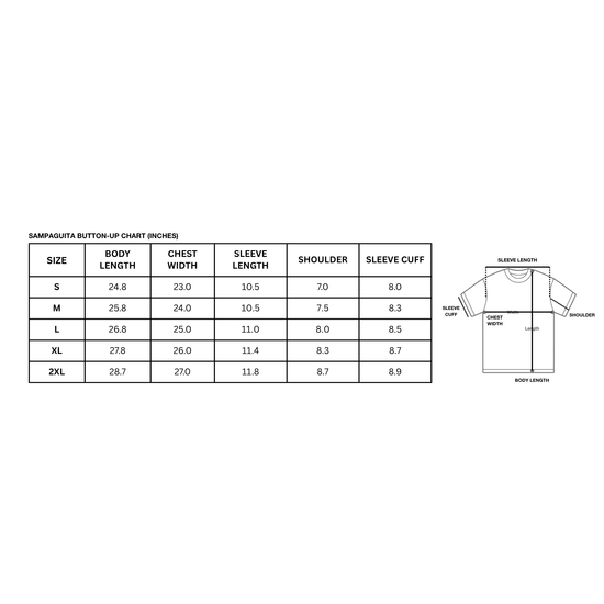 A crisp button-up featuring embroidered Sampaguita blooms, the national flower of the Philippines.